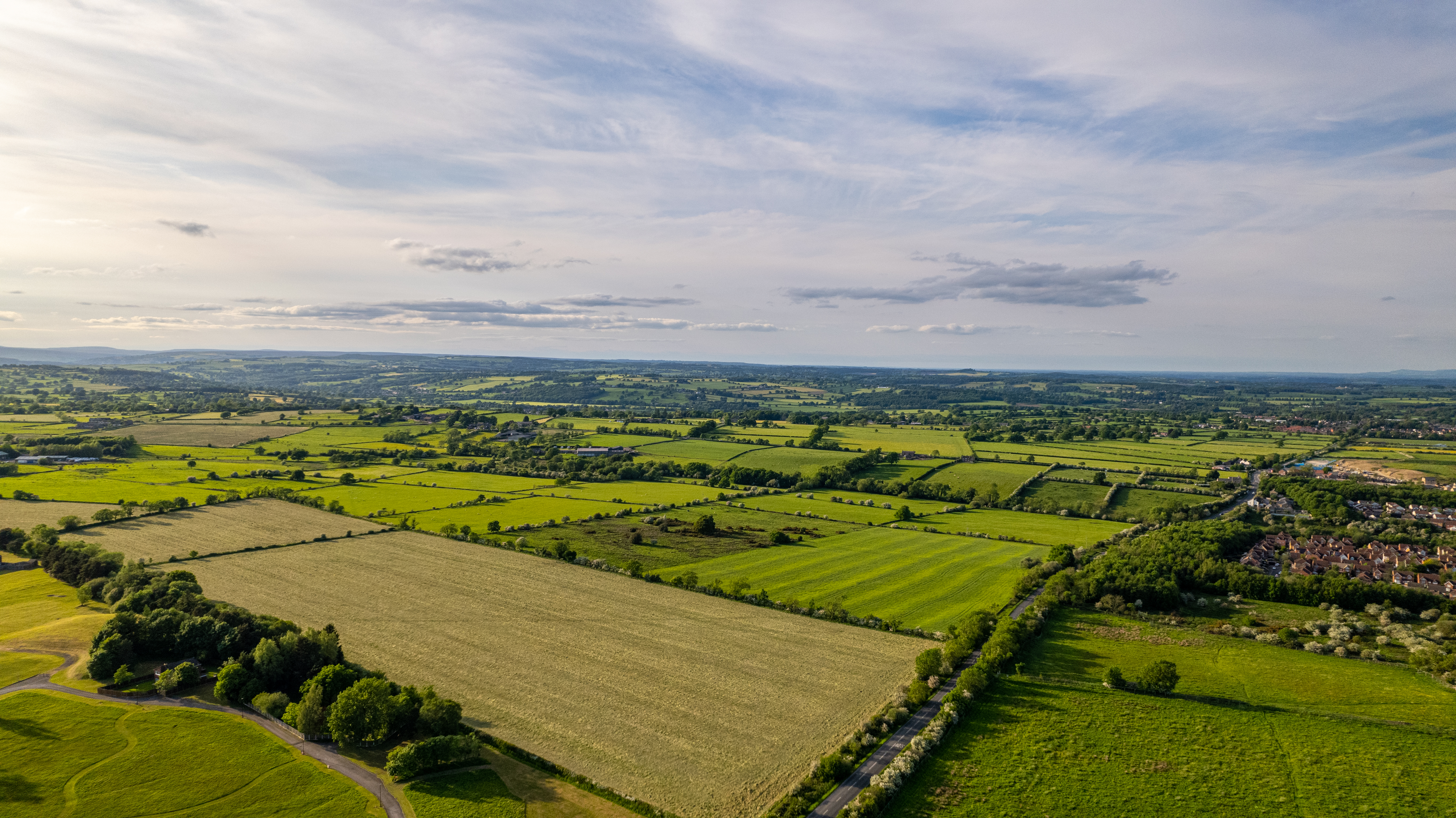 Aerial view of the farm lands during the summer in Yorkshire Dales