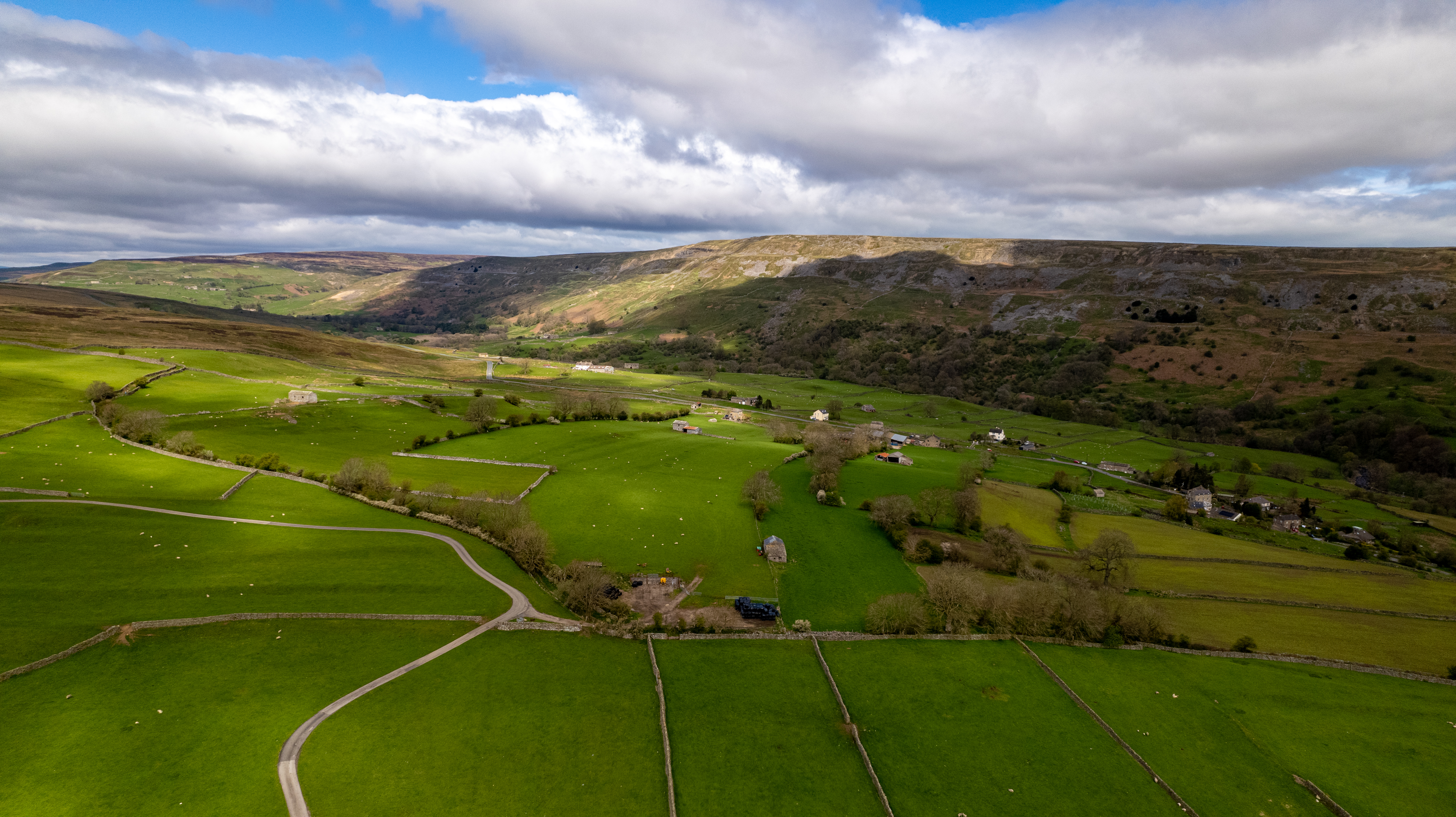 Aerial view of the hills and fields in Yorkshire