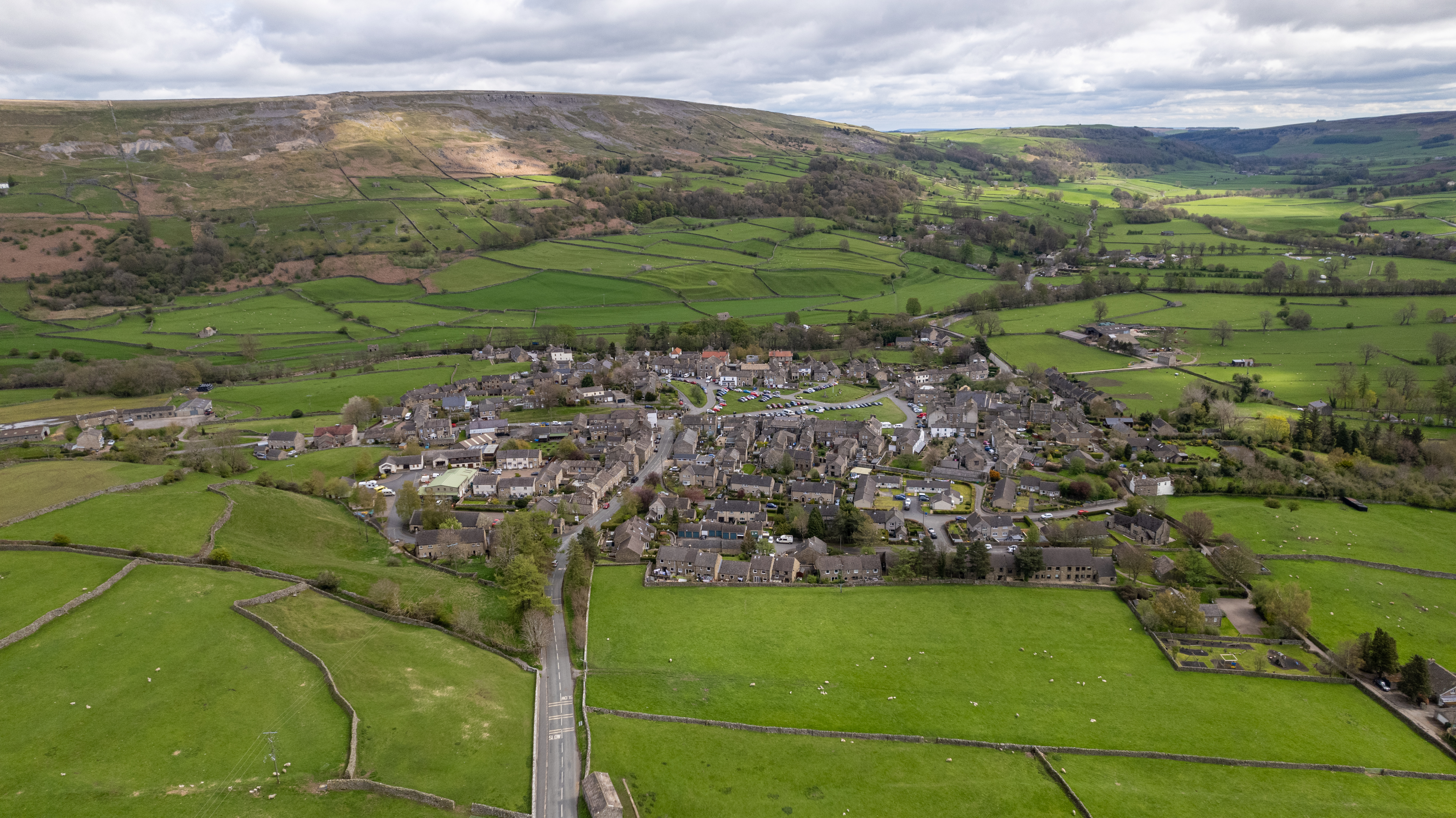 Aerial view of the small village in Yorkshire Dales