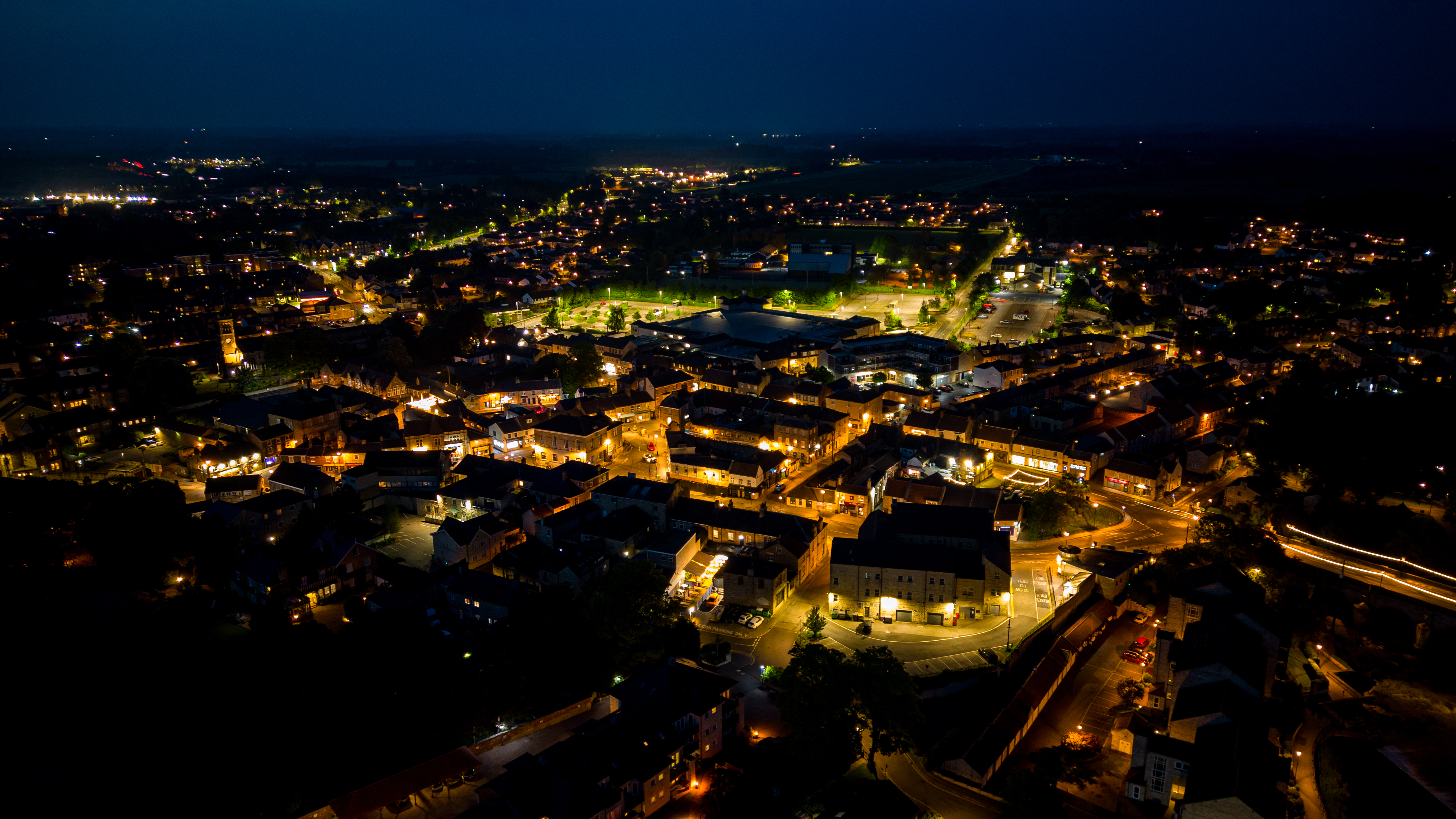 Aerial view of the town during the night