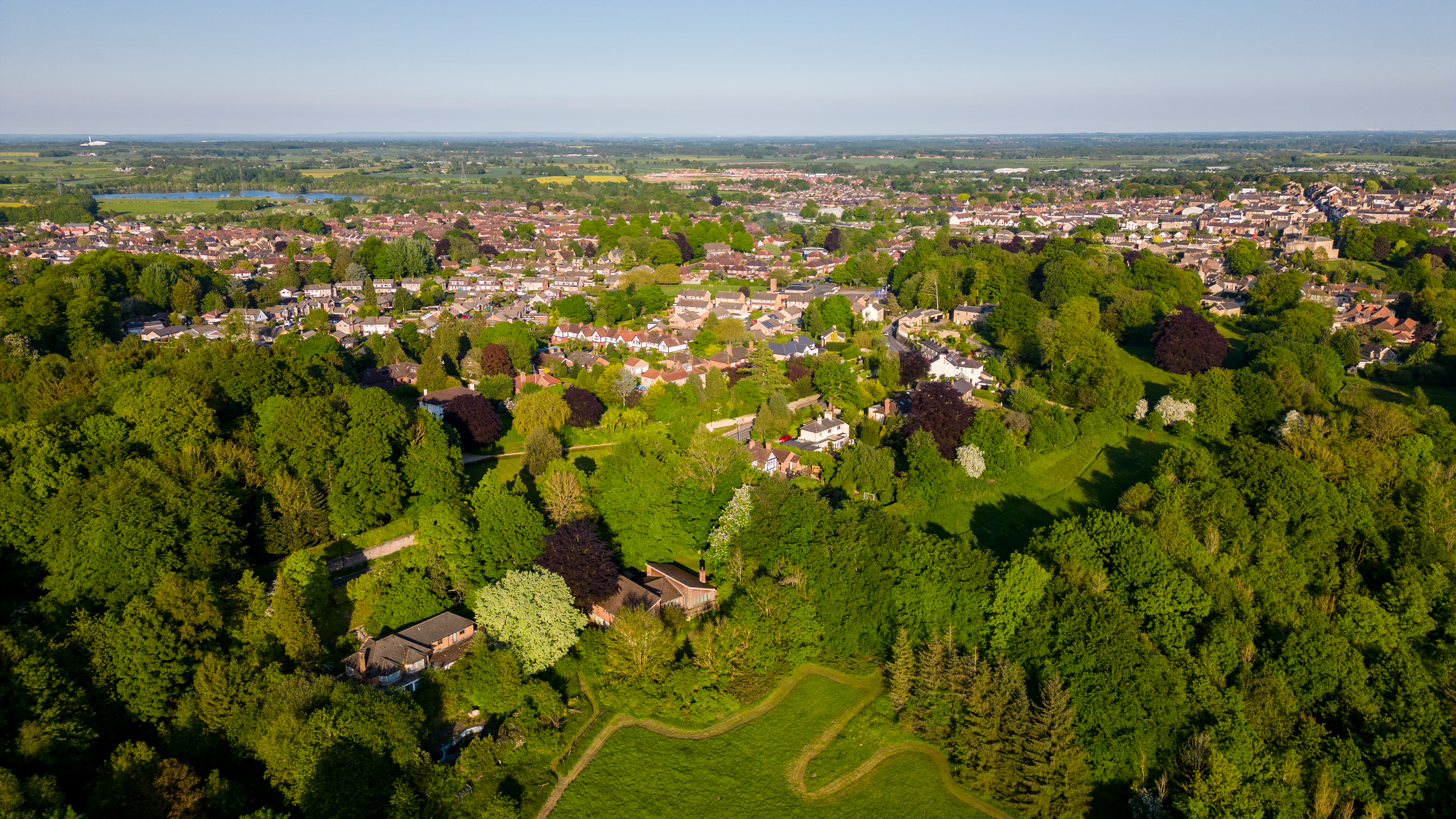 Aerial view of the village and forest in Yorkshire