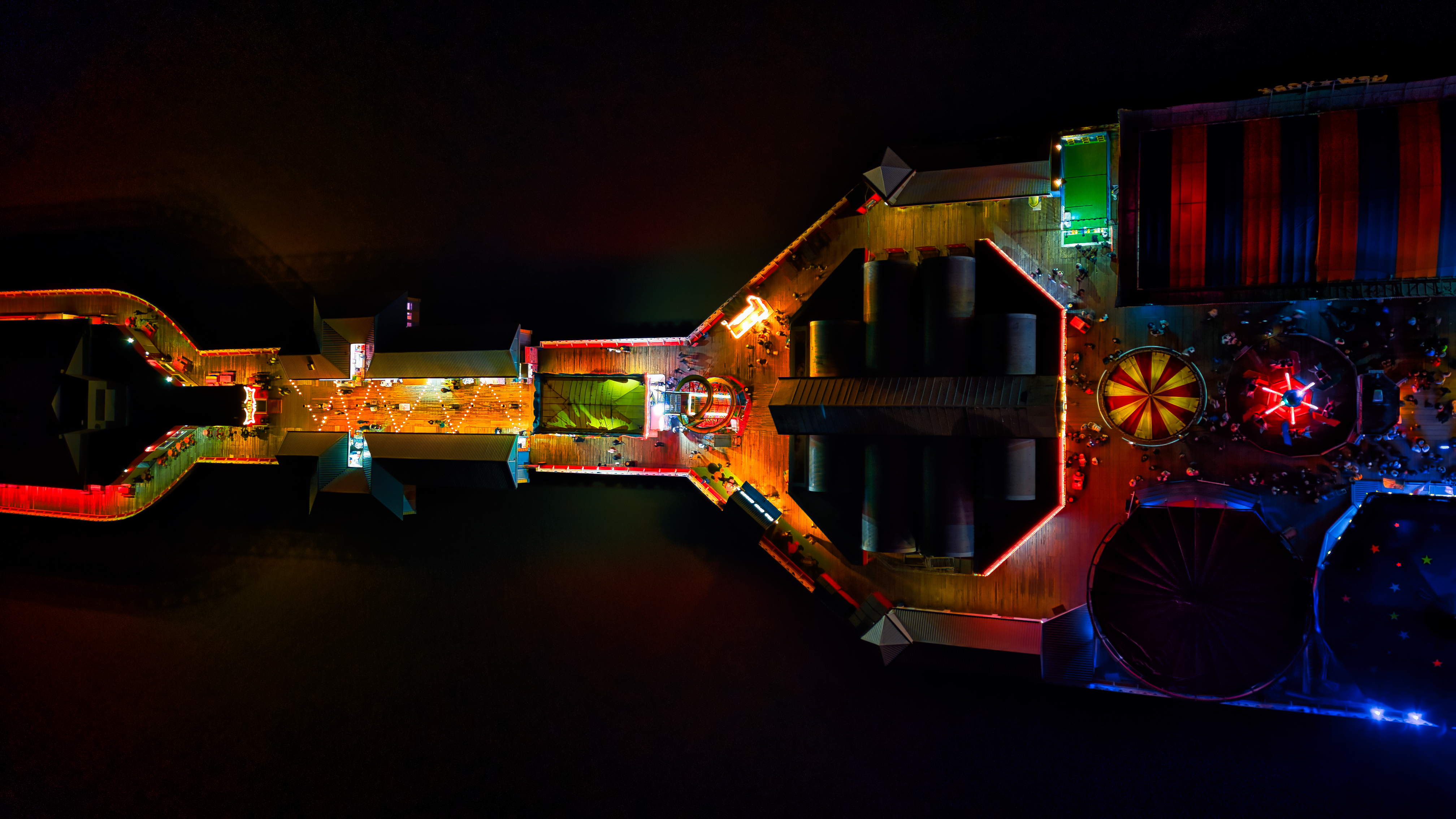 Industrial machinery illuminated at night with vibrant colorful lights, showcasing a futuristic or high-tech atmosphere in Backpool, England.