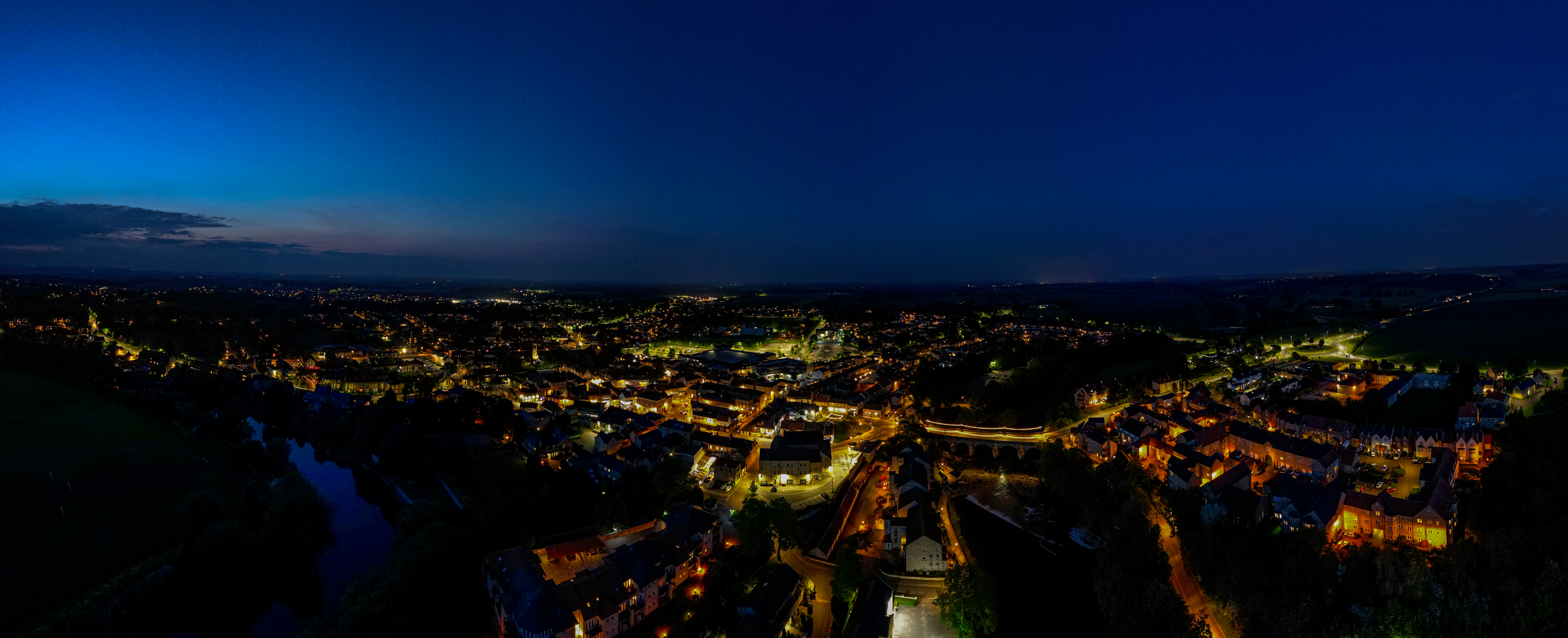 Panoramic aerial view of the town during the night