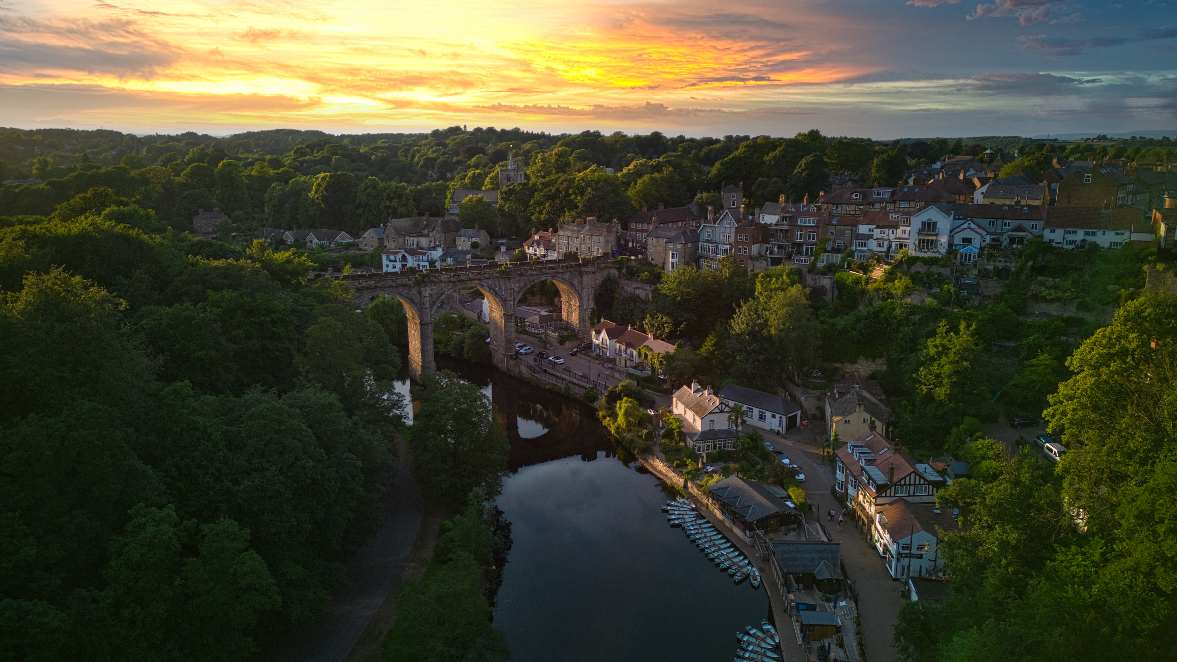 Scenic aerial view of the bridge in Knaresborough, North Yorkshire.