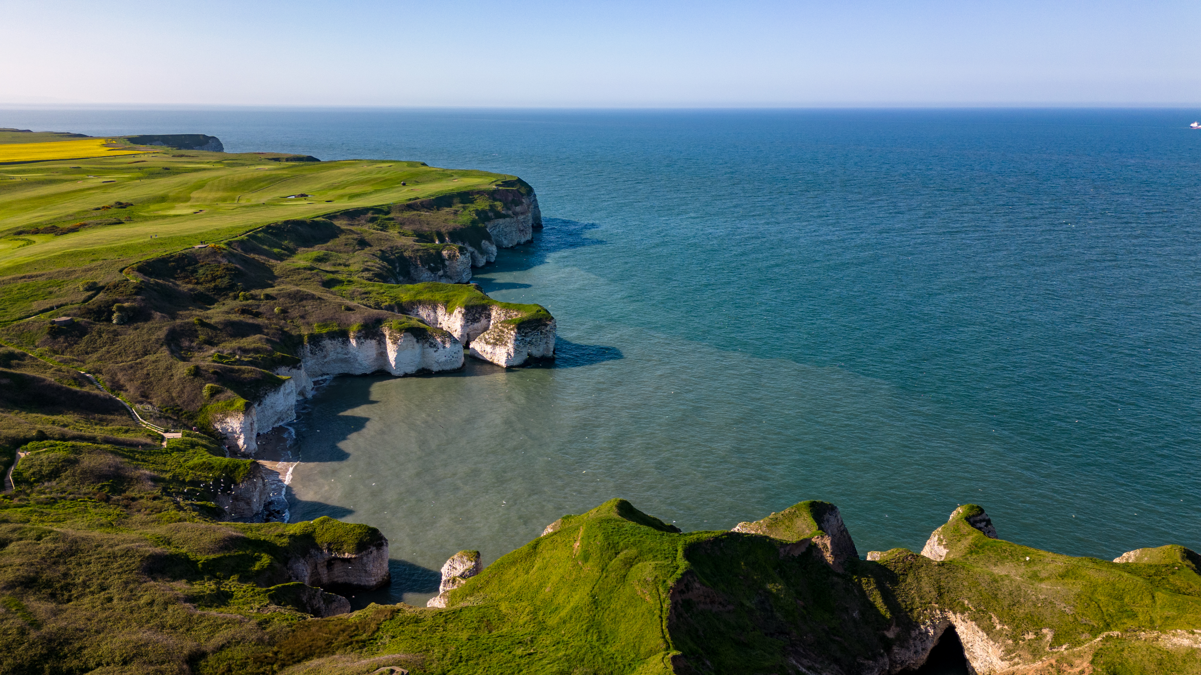 Scenic aerial view of the coast in Flamborough, England