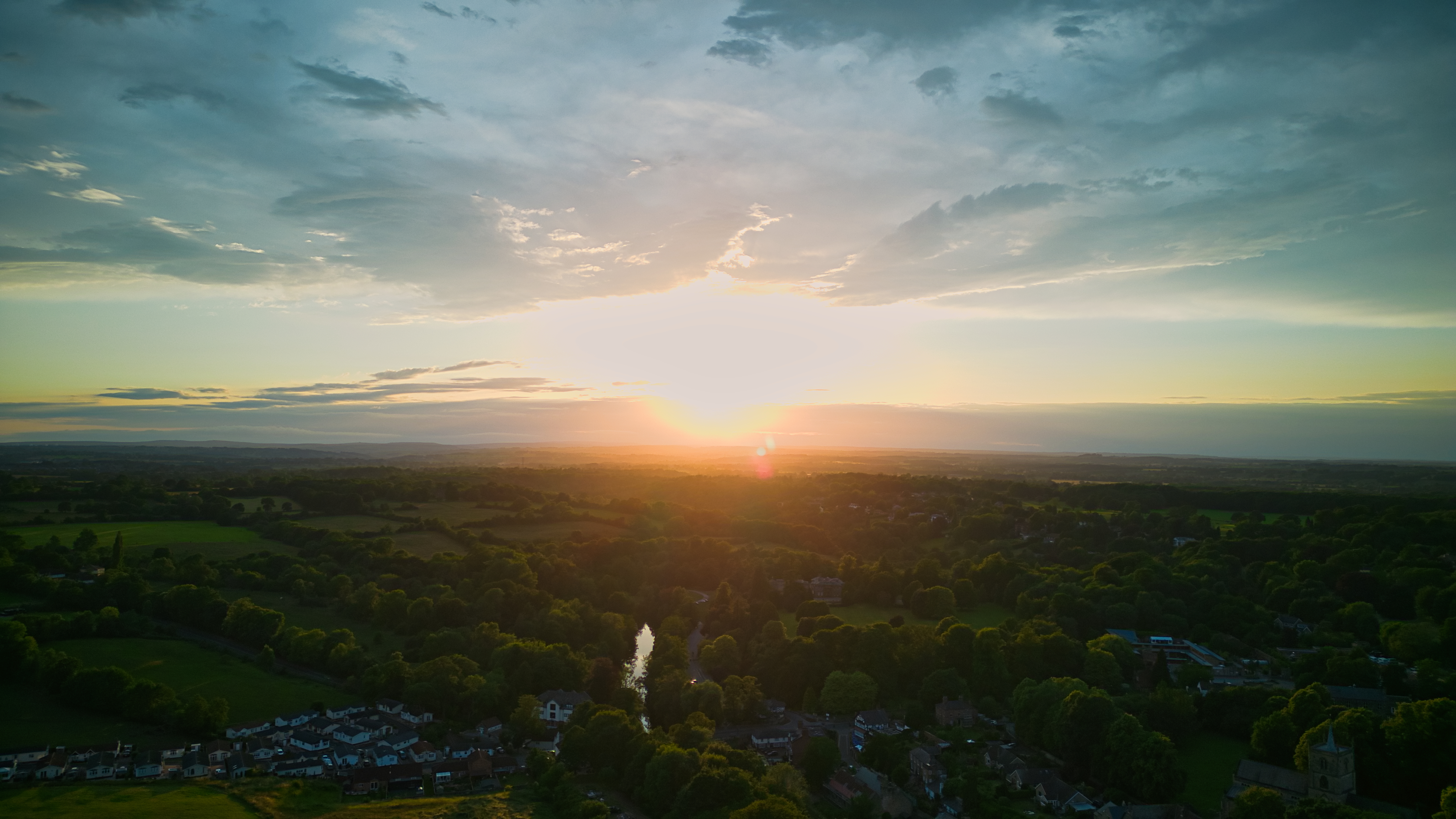 Scenic photo of the sunset above the town in Knaresborough, North Yorkshire.