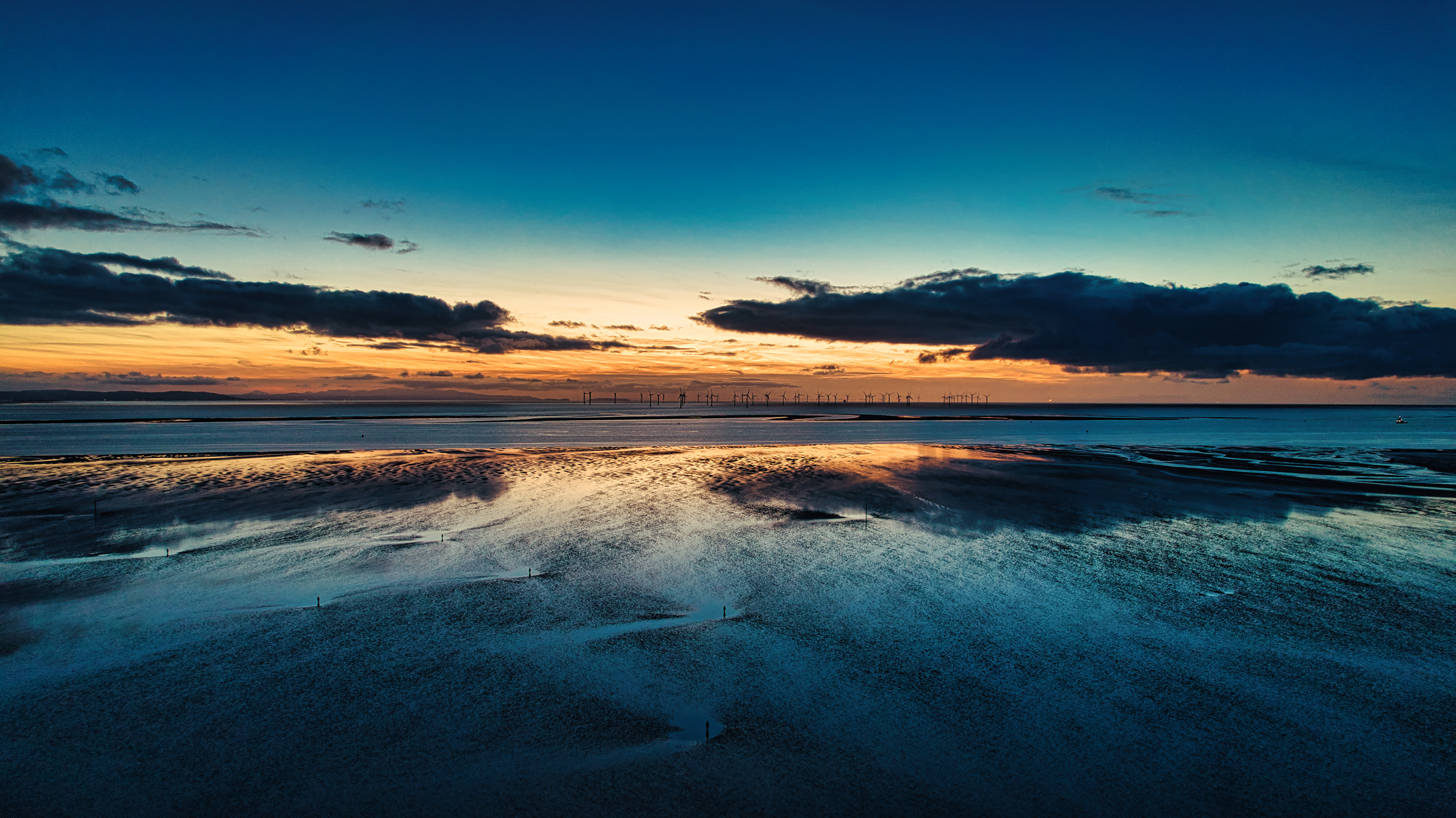 Serene beach sunset with vibrant sky and gentle waves, ideal for backgrounds or nature themes in Crosby, UK.